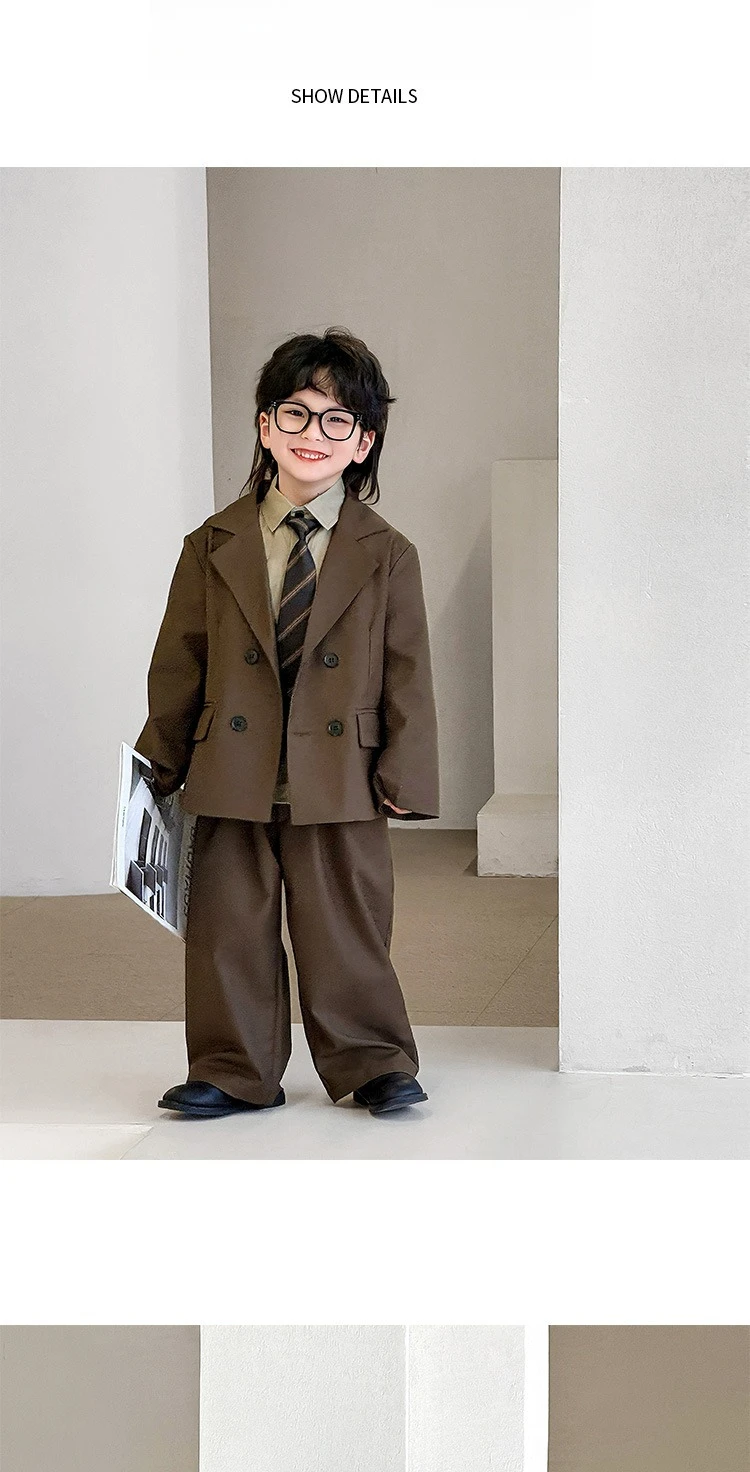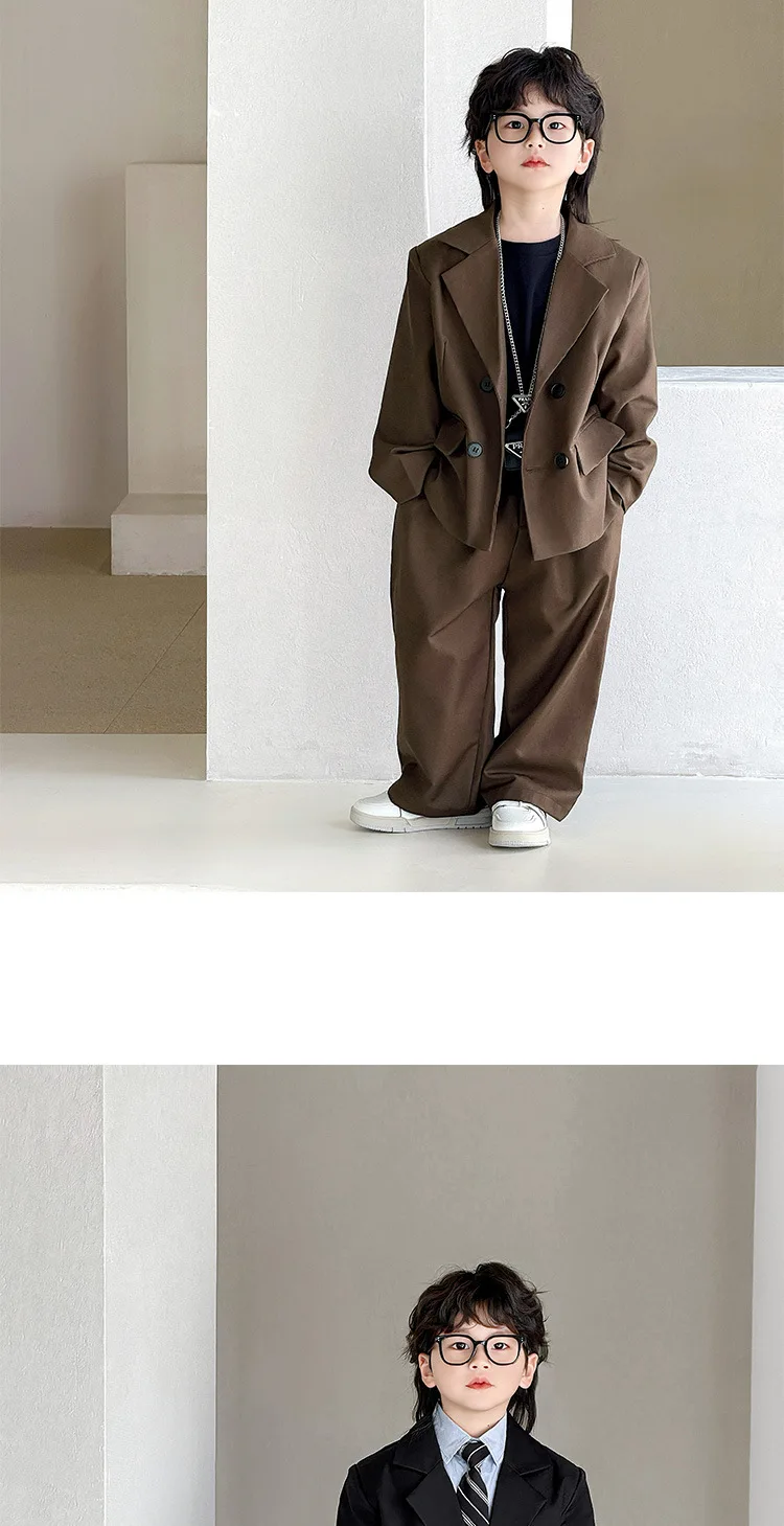 2025 Autumn Kids Suit Boys Loose Blazer Formal Wear Stylish Wedding Flower Girl Speech Set Elegant School Children's Clothes