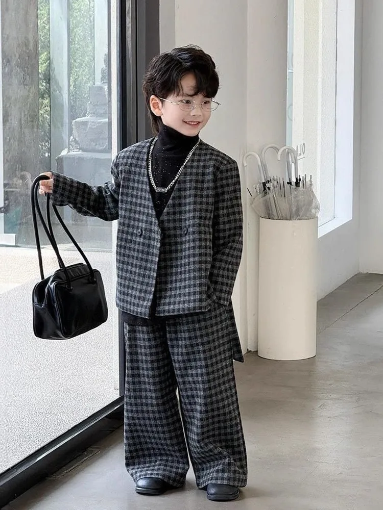 2025 Autumn New Boys' Korean Style Blazer Sets Flower Boy Runway Show Costume Formal Occasion Attire