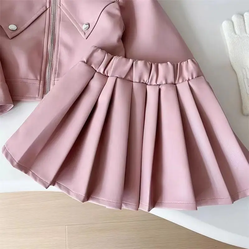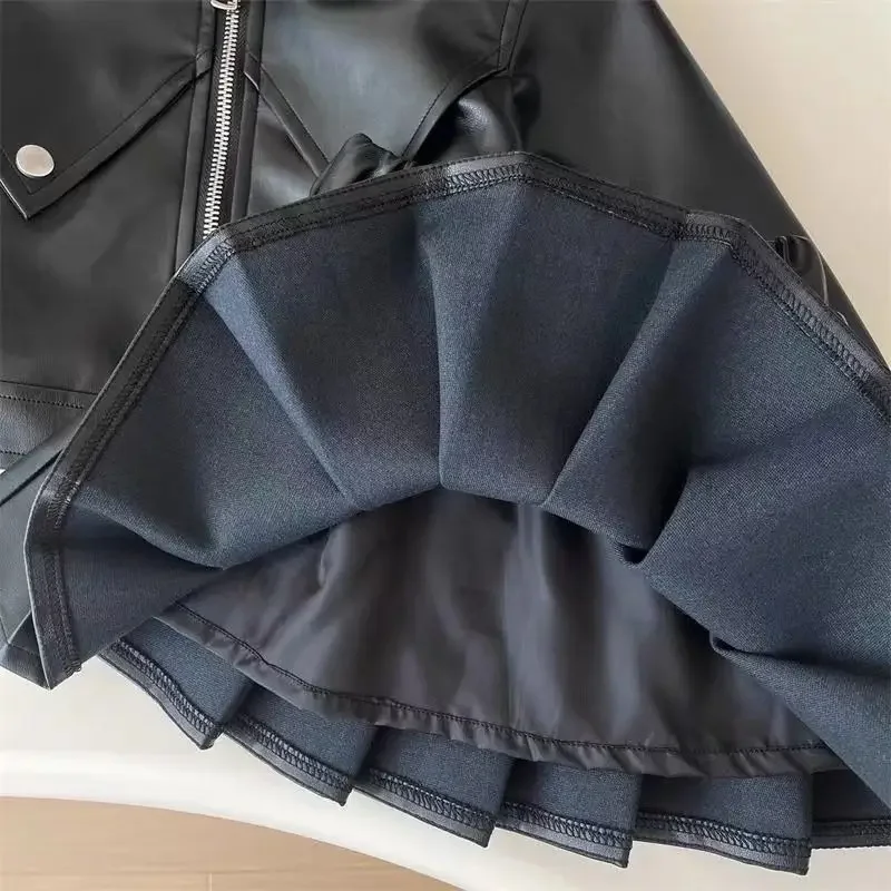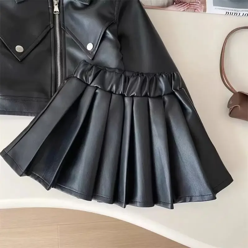 2025 Girls' Faux Leather Jacket Trendy Biker Style Coat Stylish Toddler Outerwear