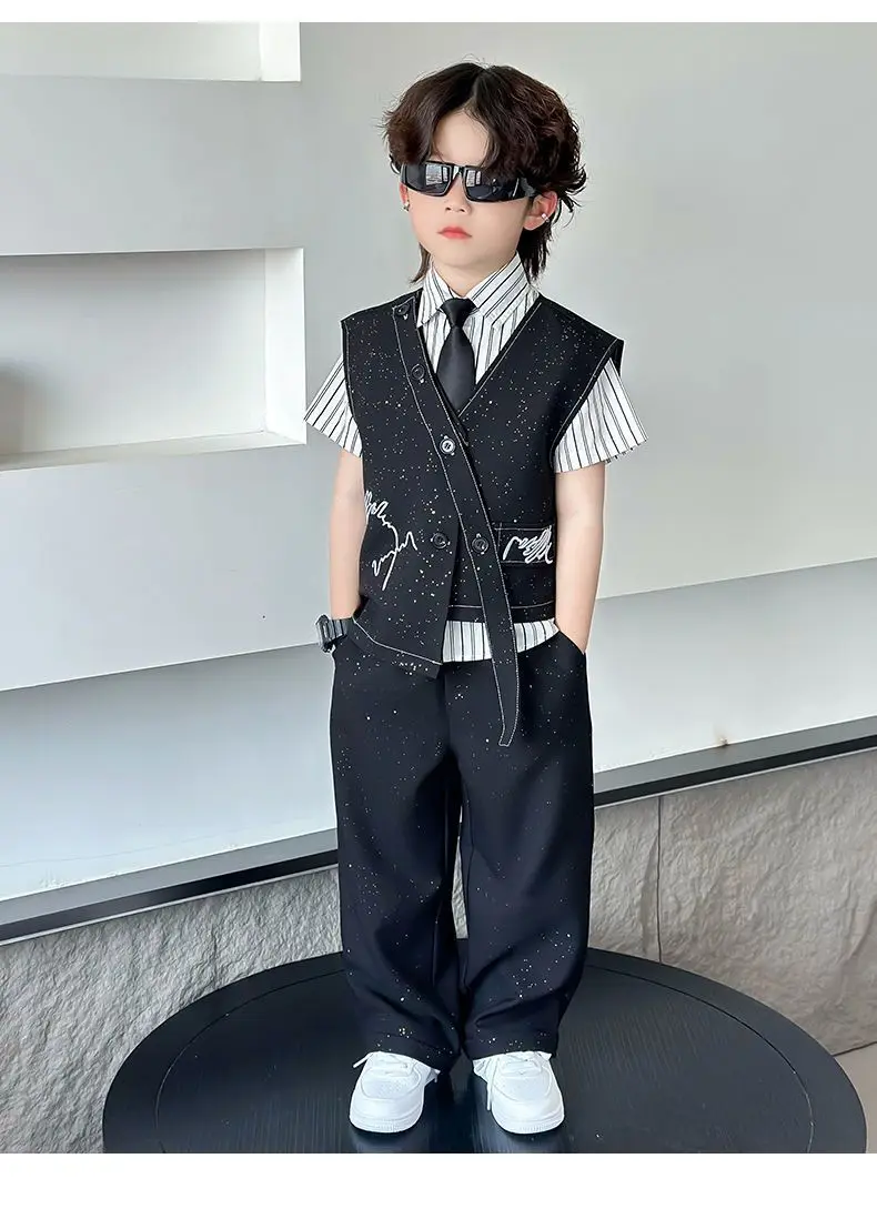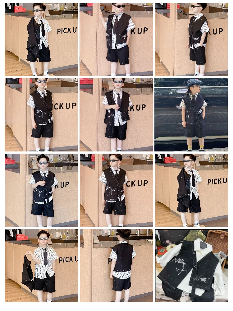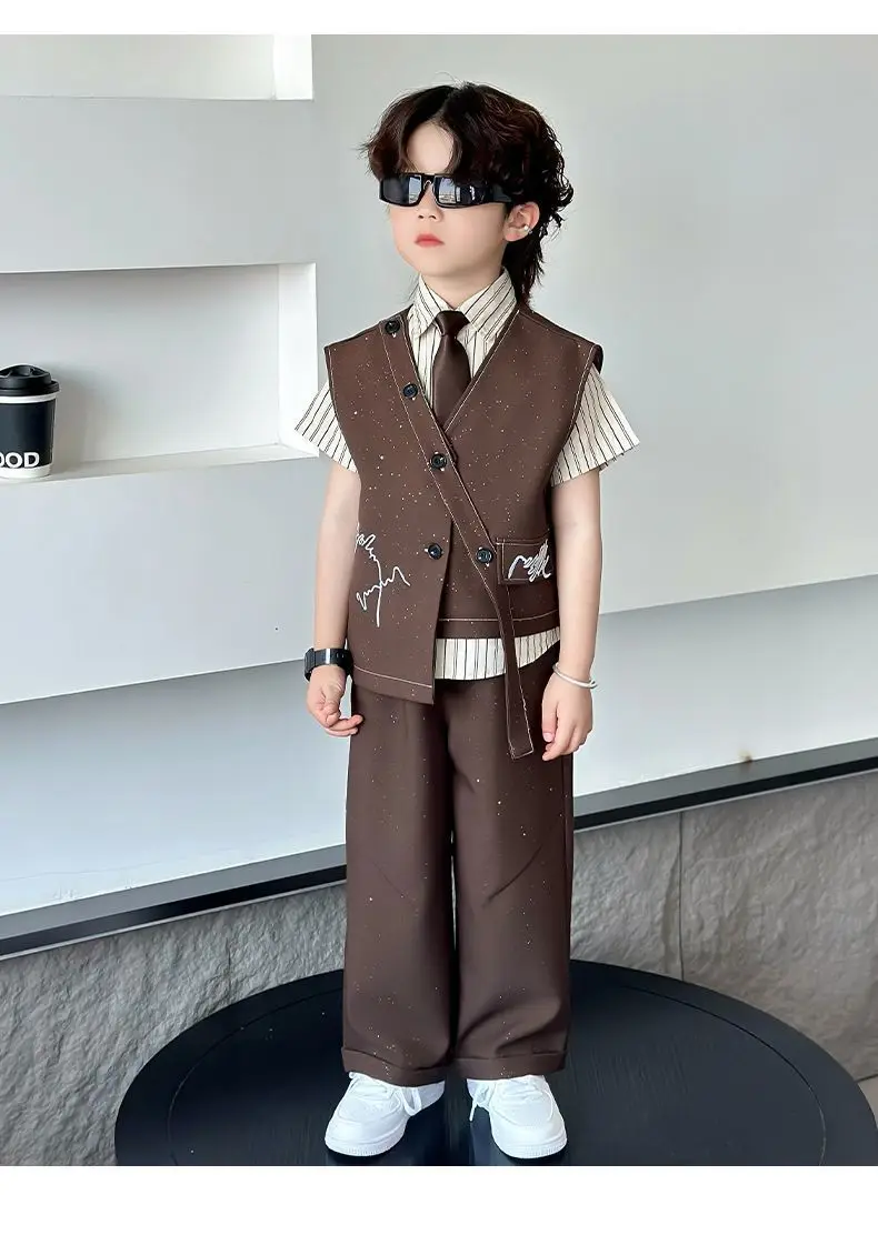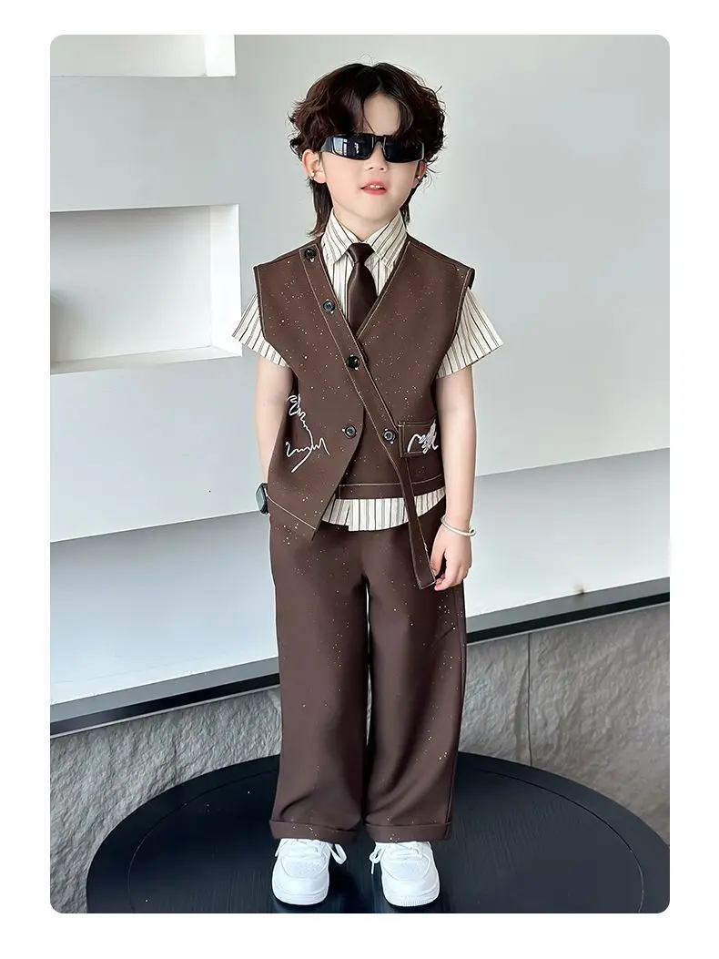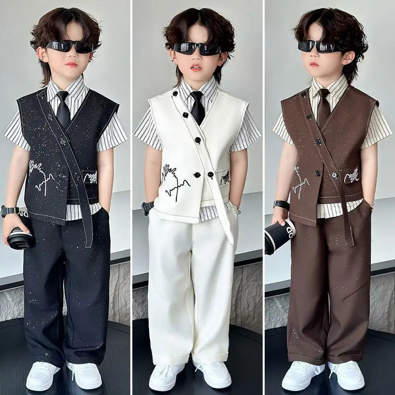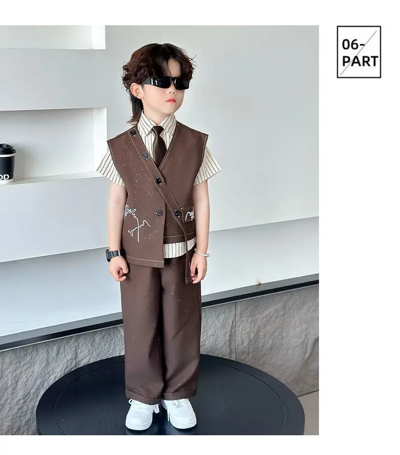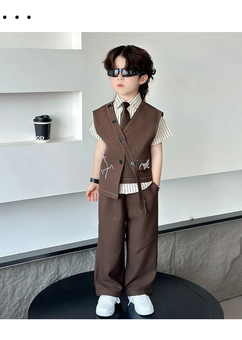 3 PCS set Autumn Spring Boy Retro Stripes TShirt+Pants Shorts+Vest Kid Children baby Gentleman Handsome Streetwear Party Clothes