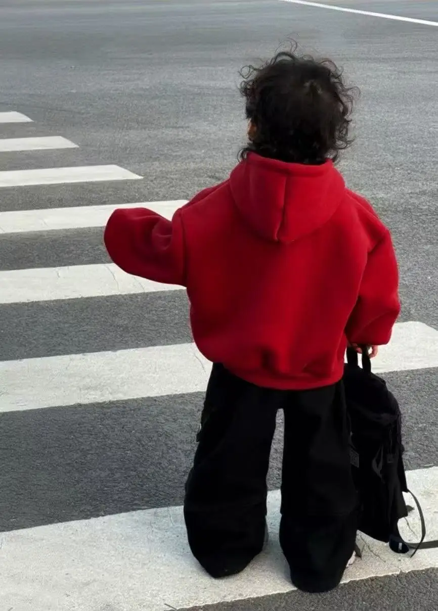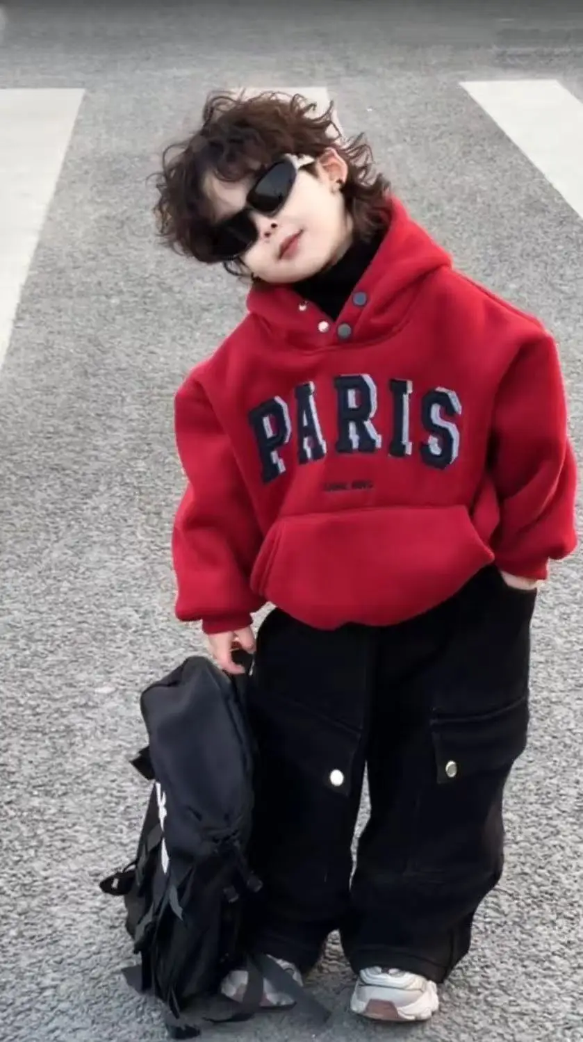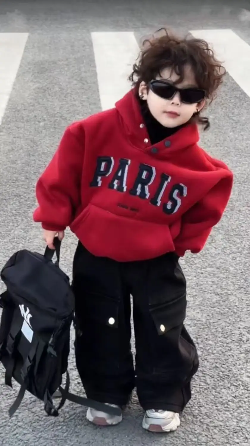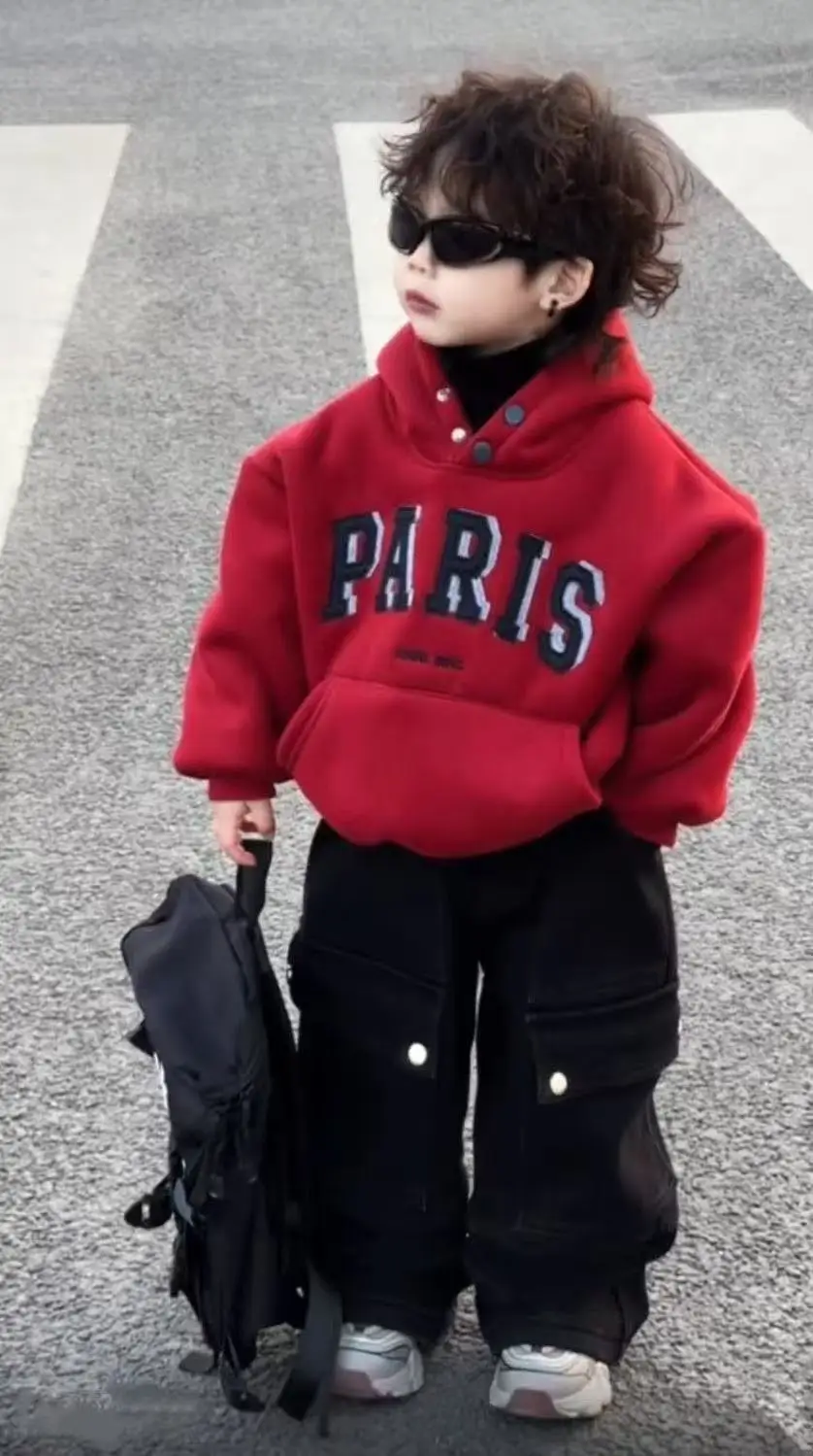 Boys Red Fleece Set 2025 New Year's Clothing Baby Autumn and Winter Hooded Sweater Casual Pants Two-piece Set