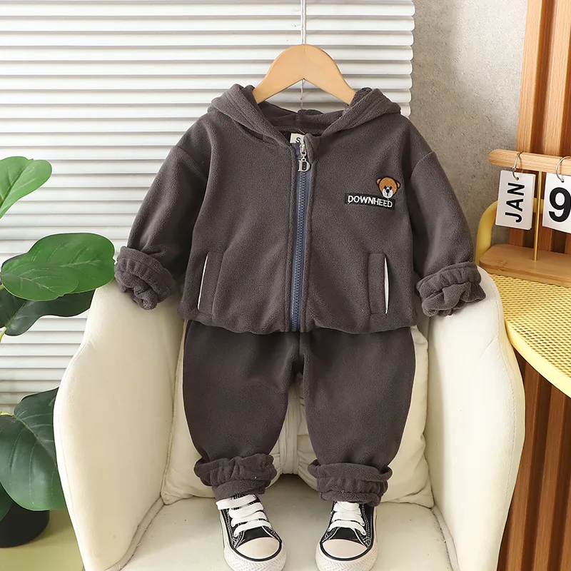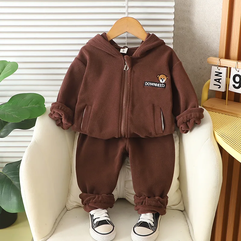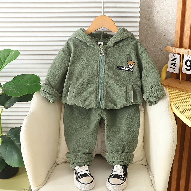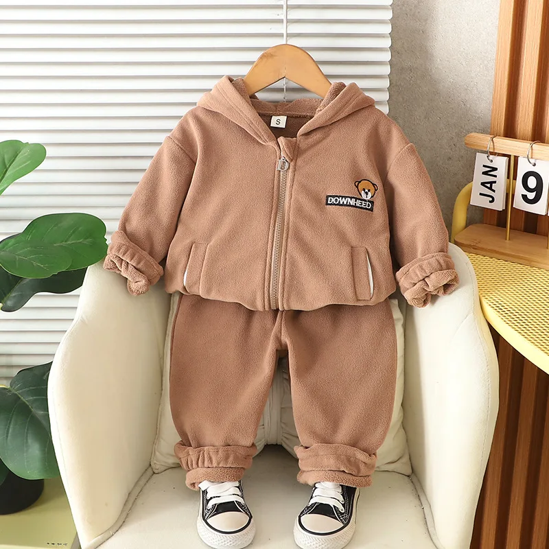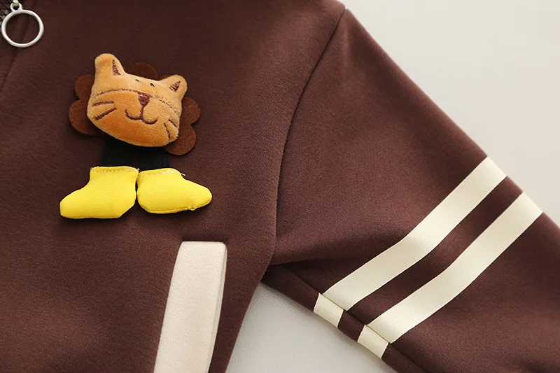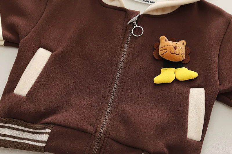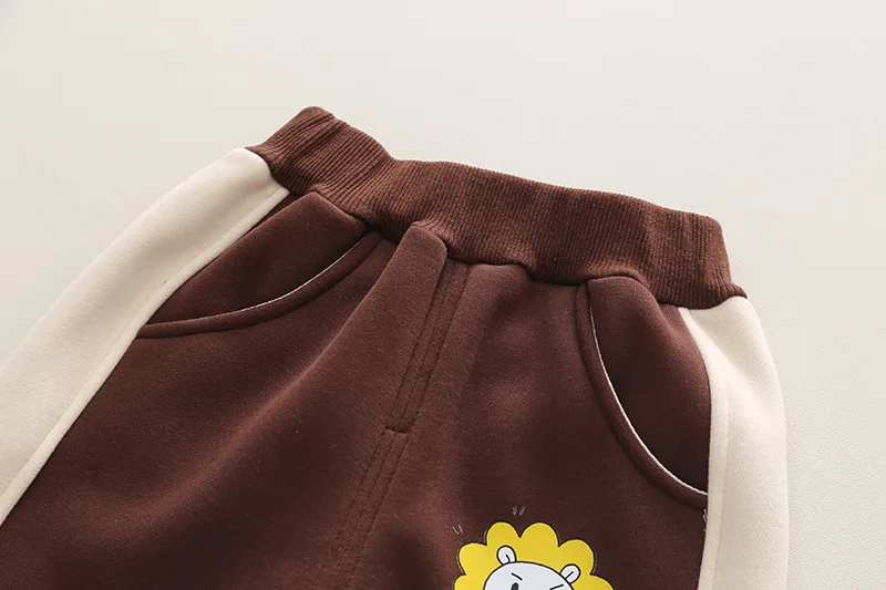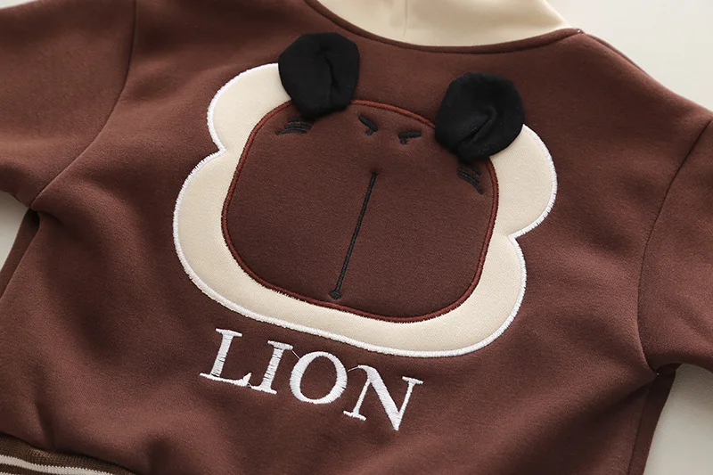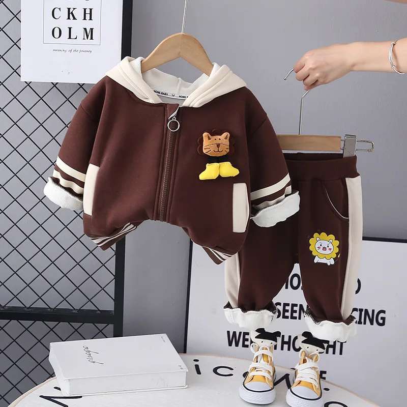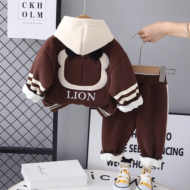 Children's Set Autumn/Winter Korean Boys' Girls' Cartoon Lion with Velvet Hoodie Two Piece Set InfantsYoung Children's WarmthSet