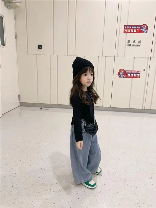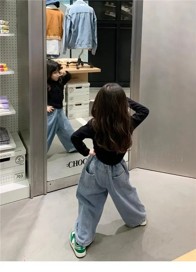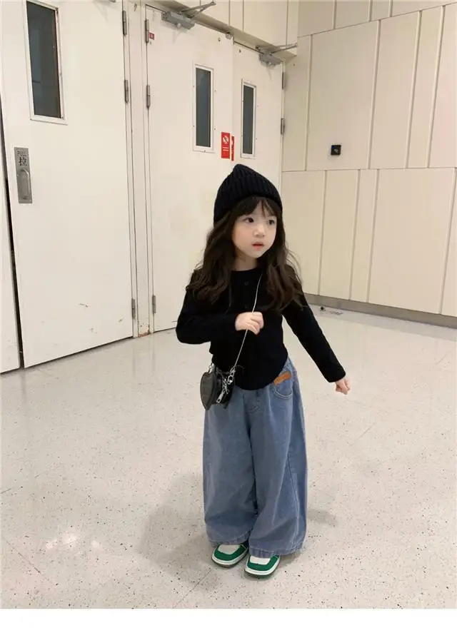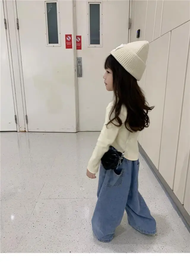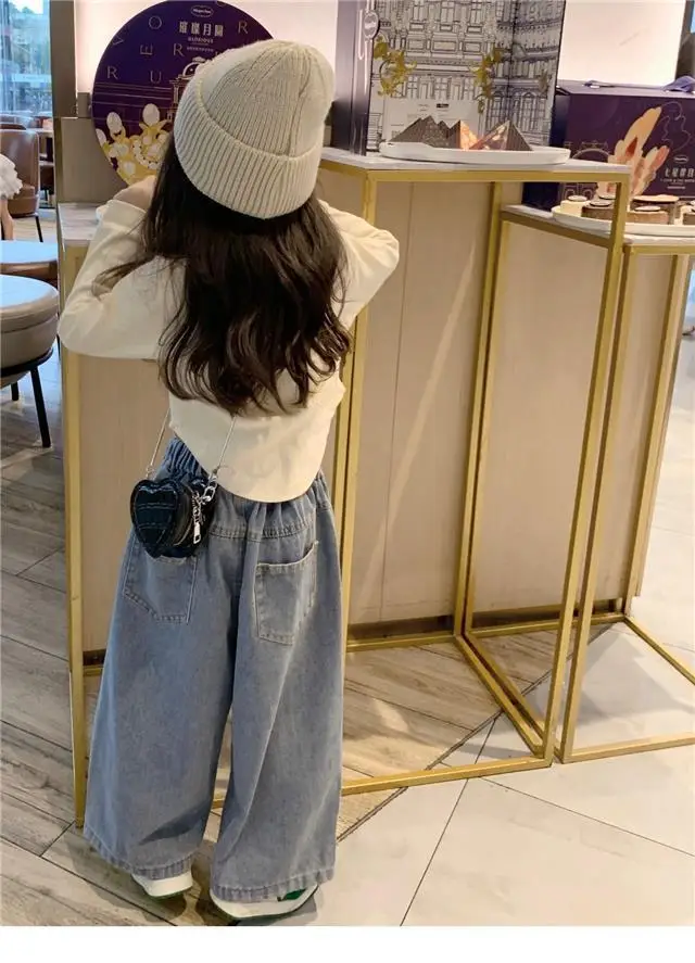 Kids Clothes Autumn Girls Sets Girls Baby Clothes Korean Style Bottoming Shirts Casual Jeans Girls Wide Leg Pants Girls Tops