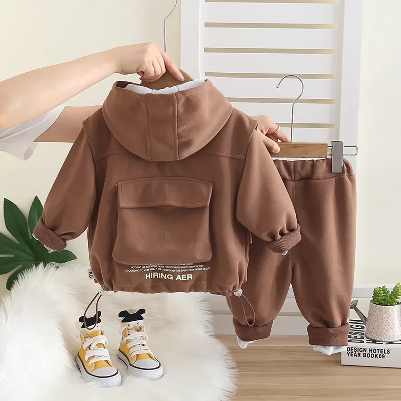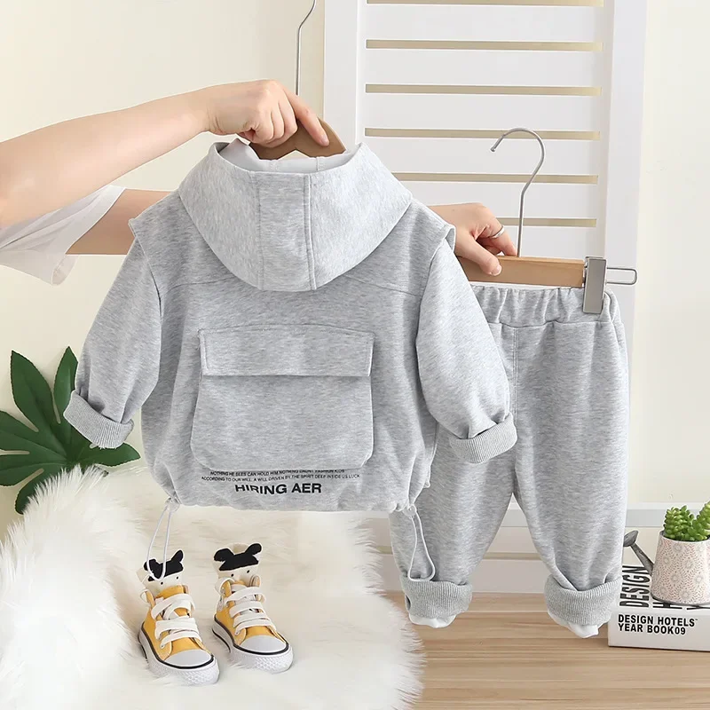 New Spring Autumn Baby Boys Clothes Suit Children Casual Vest Hooded T-Shirt Pants 3Pcs/Sets Infant Clothing Kids Tracksuits