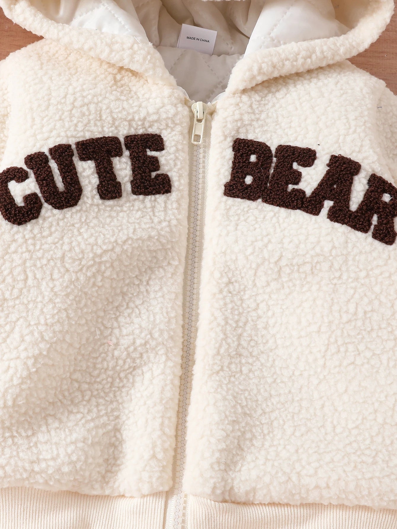 Winter Letter 3D Embroidered Quilted Fleece Zipper Hoodie